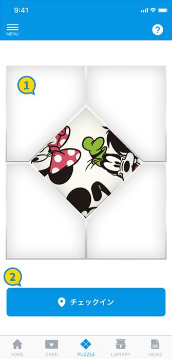 お買い物や来店チェックインでパズル1ピースが付与されます。