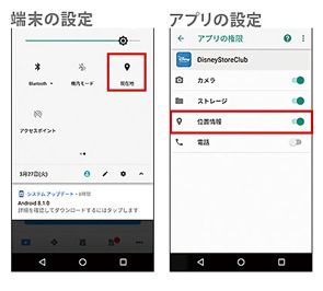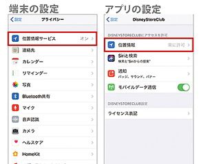 - ・アプリの設定:設定 > DisneyStoreClub > 位置情報