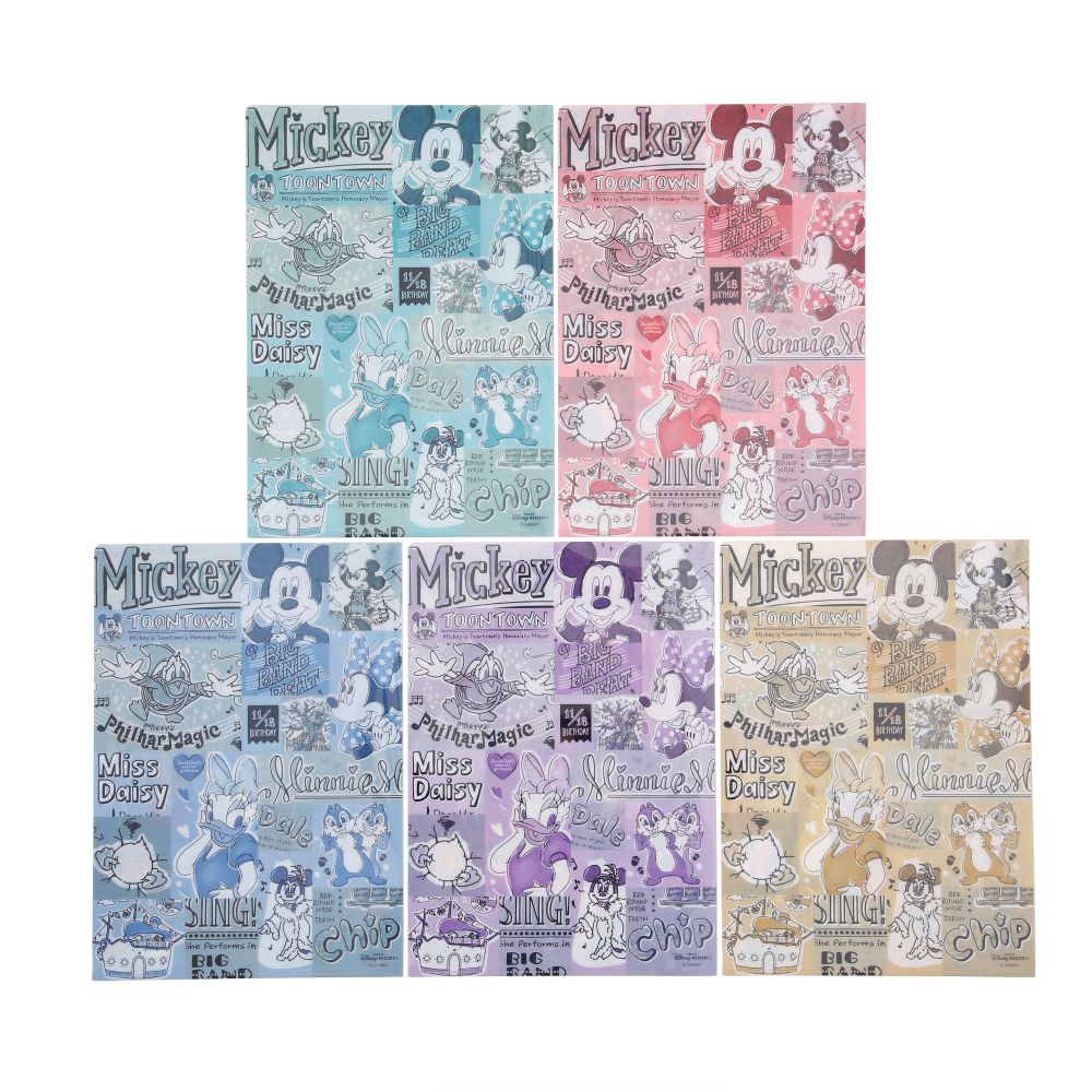 東京ディズニーリゾートにあるアトラクションやキャラクターなどが手描き風に描かれた、A4のクリアホルダー5枚セット。