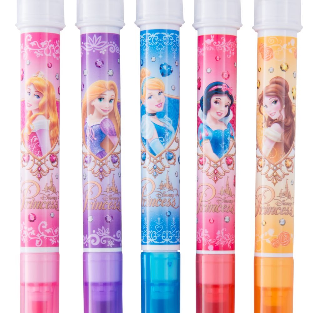オーロラ姫、ラプンツェル、シンデレラ、白雪姫、ベルがそれぞれ描かれた、スタンプ付のカラーペン5本セット。