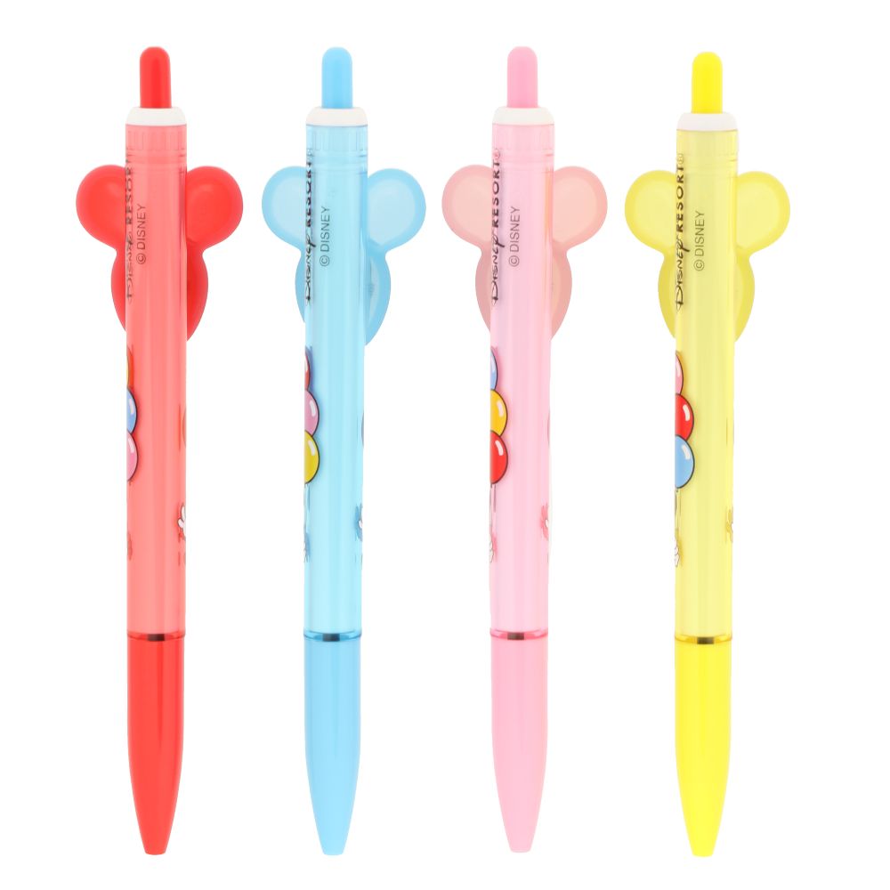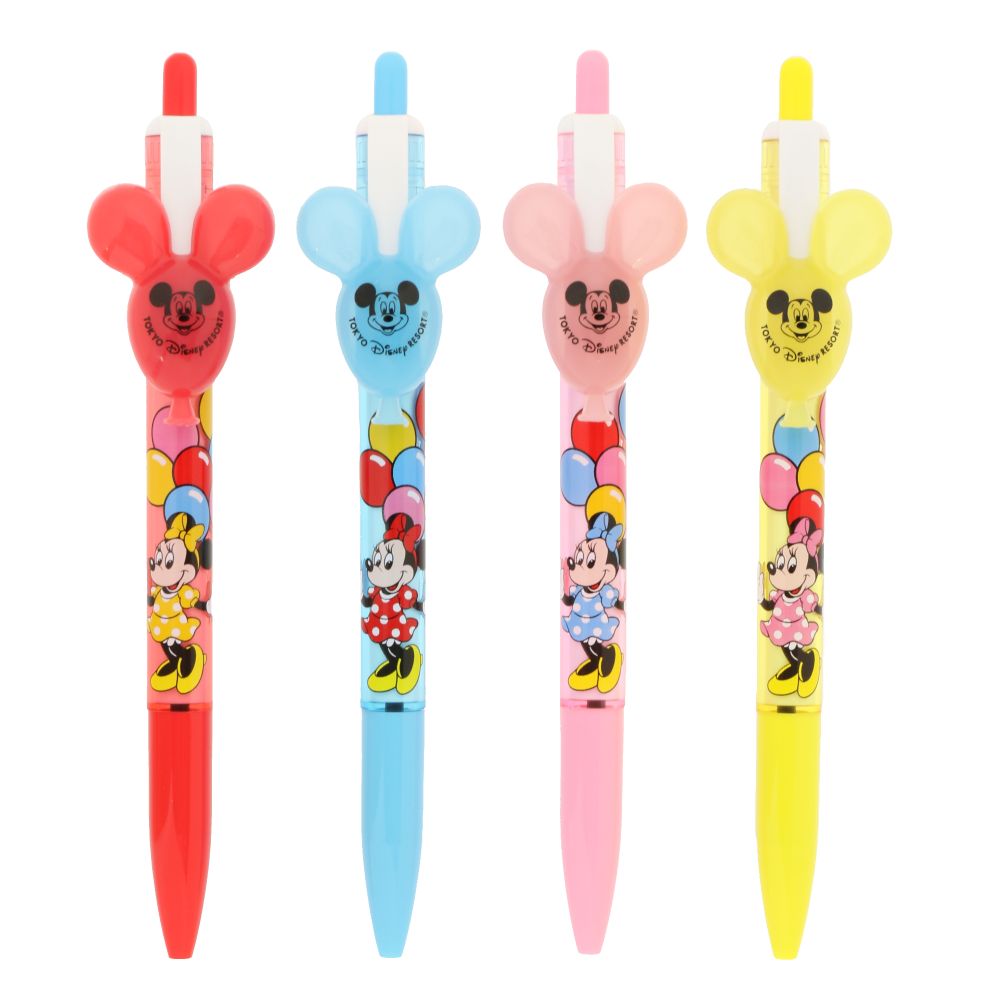 カラフルなバルーンとミニーがデザインされたボールペン4本セット。