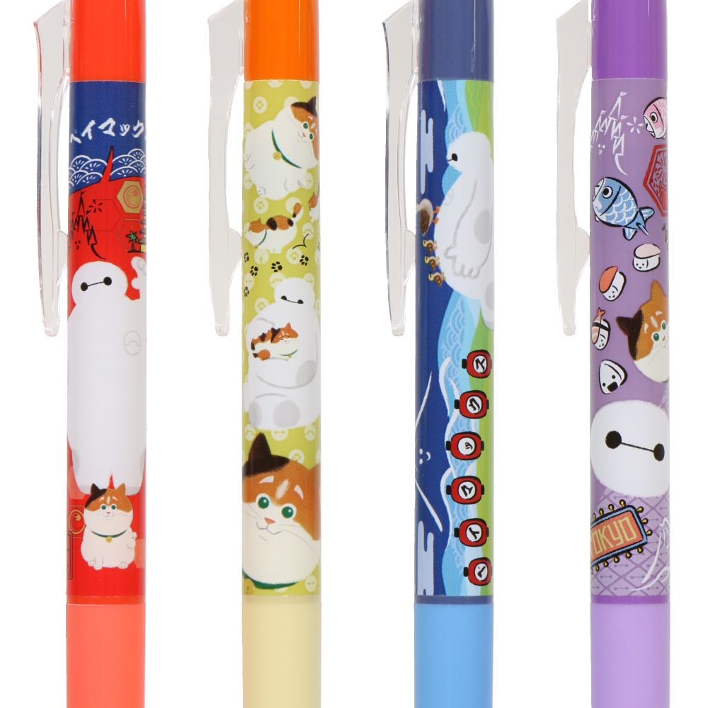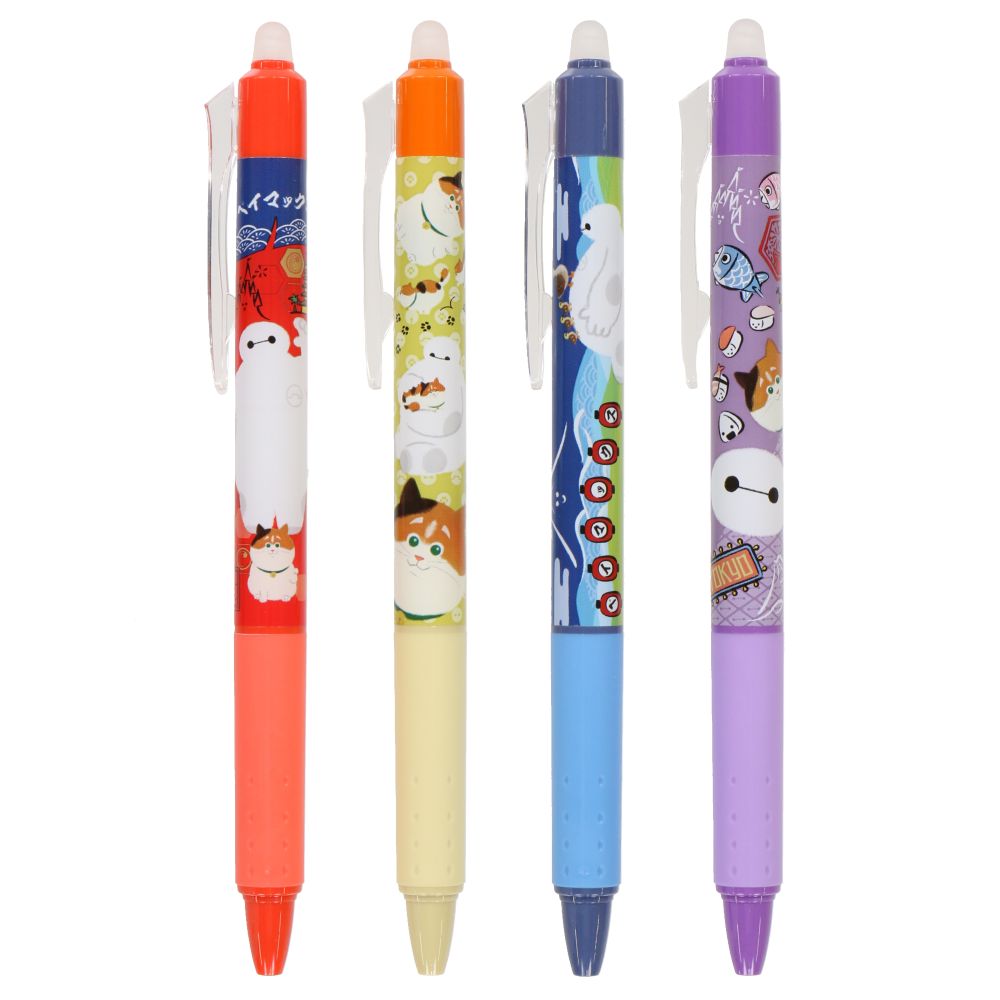 ベイマックスなどのキャラクターがデザインされたボールペン〈フリクション〉4本セットです。