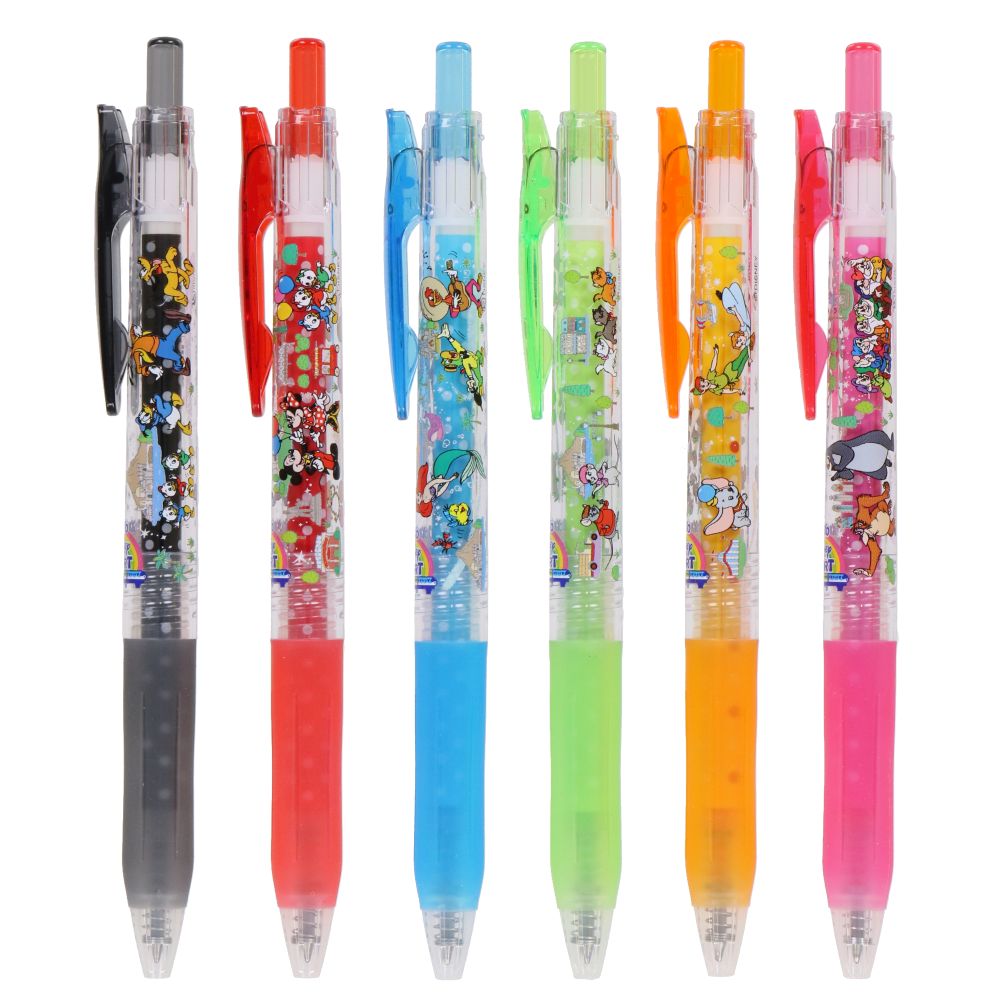 ミッキーマウスと仲間たちがデザインされたボールペン〈サラサ〉6色6本セット。