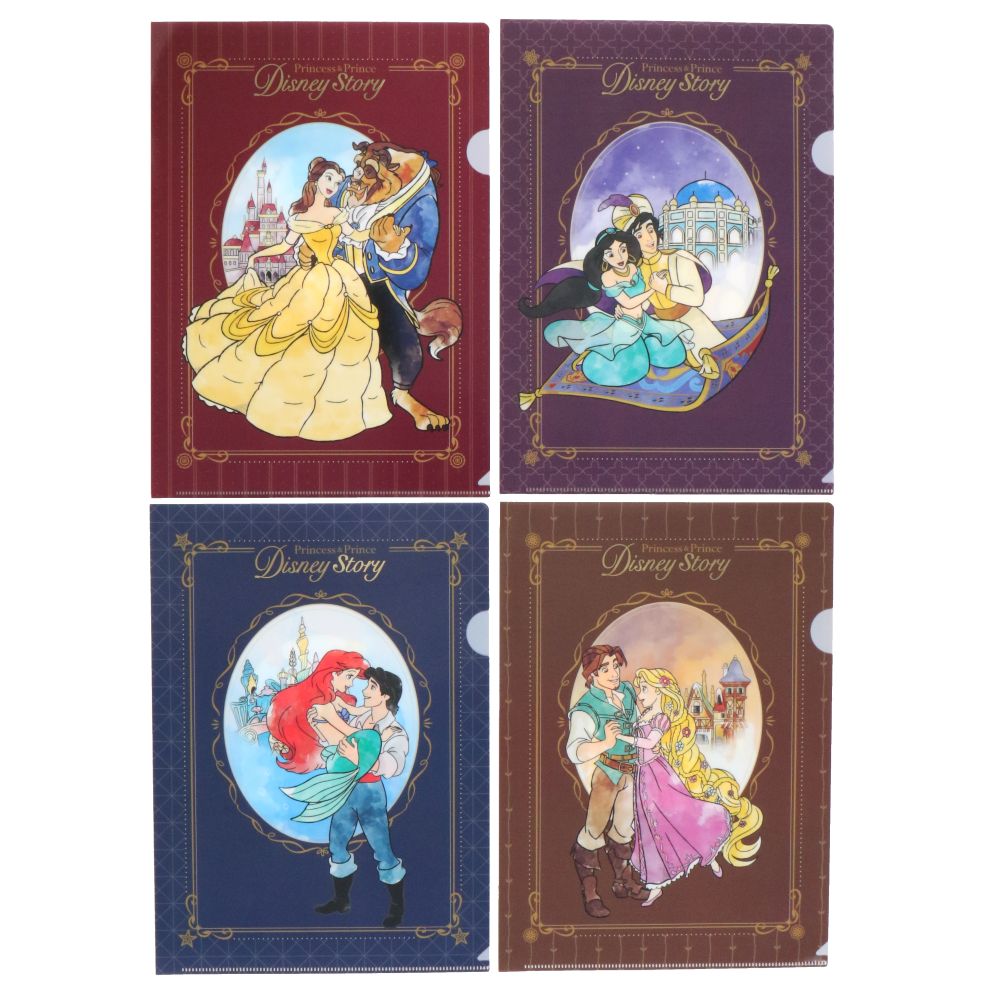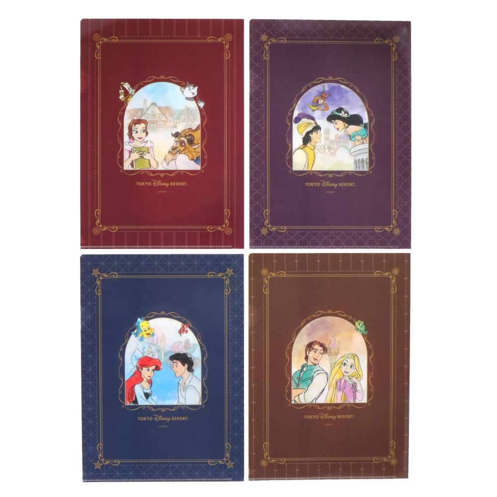 ベルやジャスミンなどの、ディズニープリンセスたちが描かれたクリアホルダーの4枚セットです。