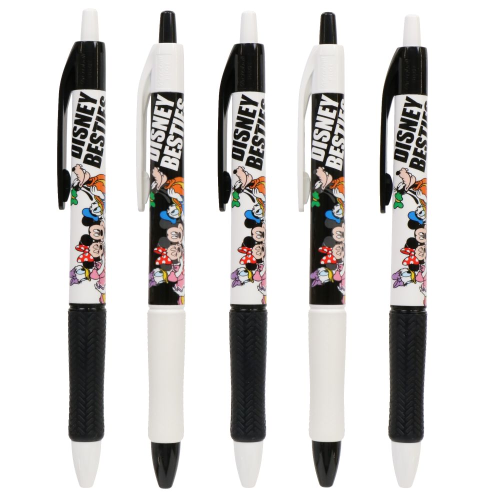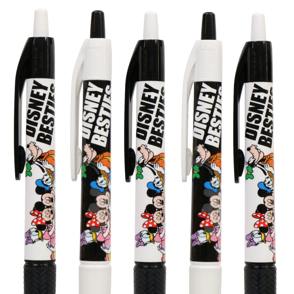 ミッキー、ミニー、ドナルド、デイジー、グーフィーが仲良く並んでいる様子がなんとも微笑ましいボールペン〈アクロボール〉5本セットです。