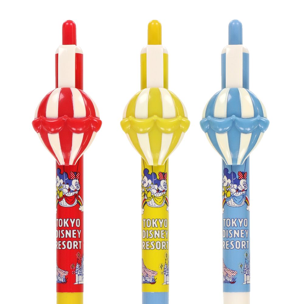 ミッキーたちが気球に乗った、レトロなデザインのシャープペンシル3本セットです。