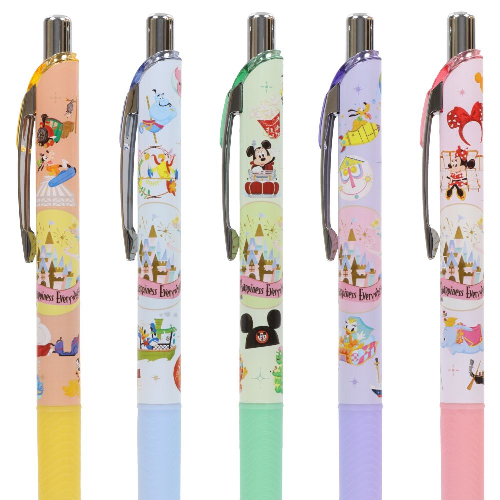 カラフルなパークのアイコンがデザインされたボールペン〈エナージェル〉の5本セットです。