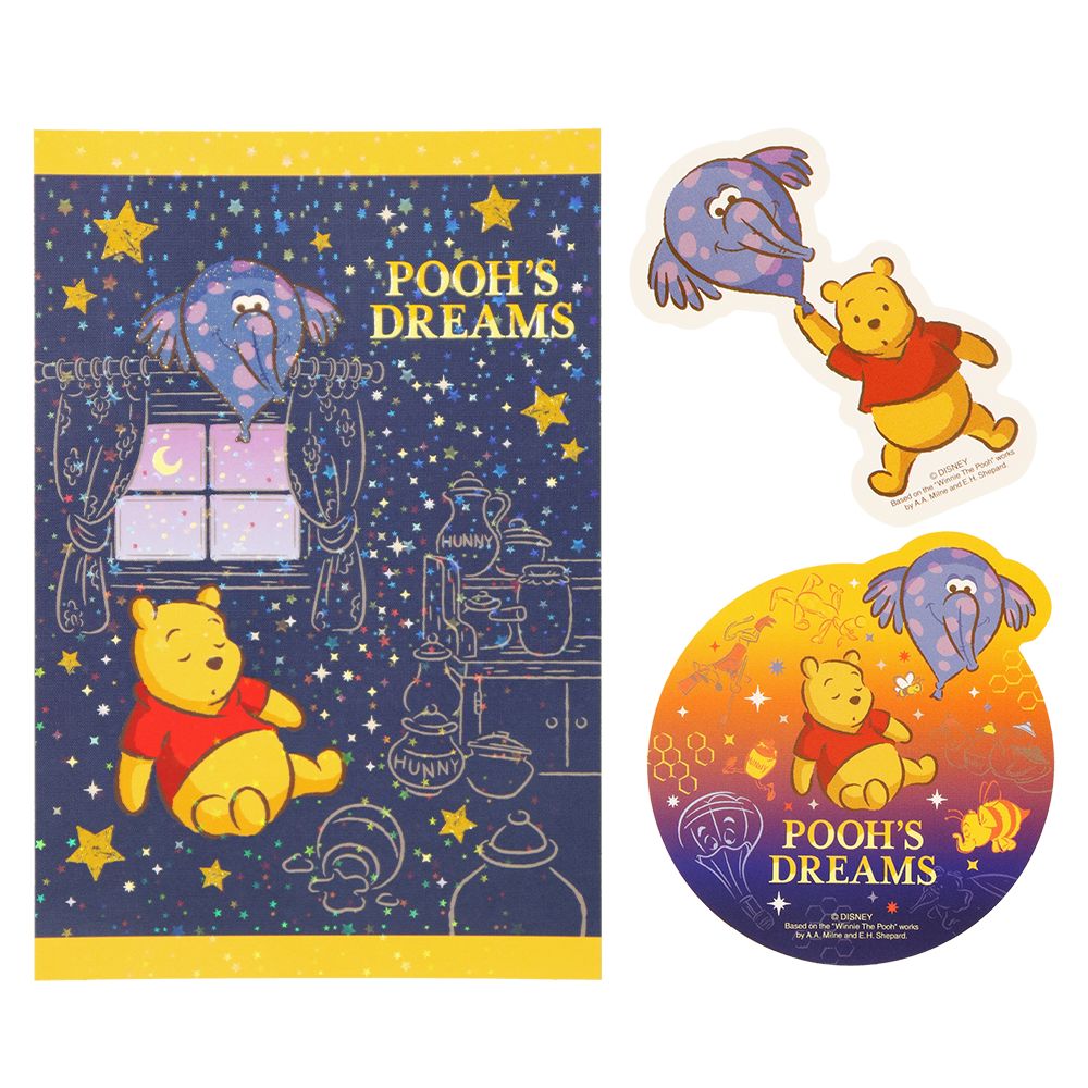 プーさんの夢の世界が感じられるポストカードとステッカー2枚のセット。