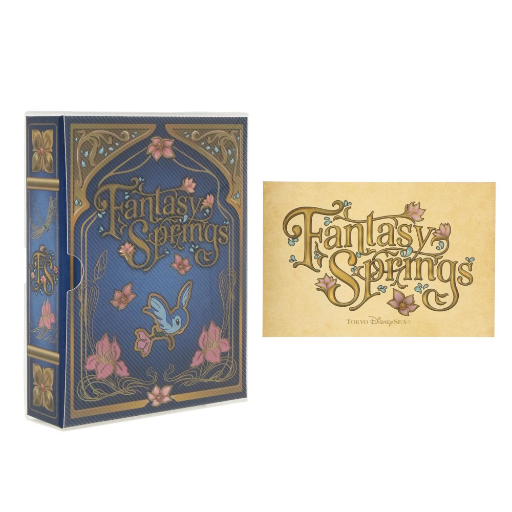 東京ディズニーシーにあるファンタジースプリングスのロゴをあしらった世界観を感じられるポストカードホルダーとポストカードのセット。
