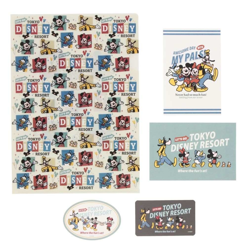 はじける笑顔と元気いっぱいのミッキーたちがデザインされたステーショナリーセット。