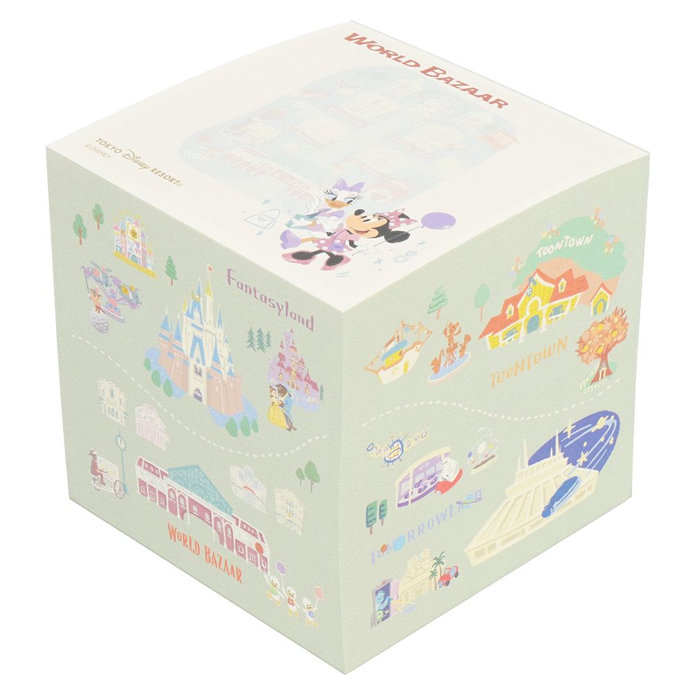 ミッキーたちが楽しそうに巡っているパークのマップやアイコンをモチーフにしたメモ。