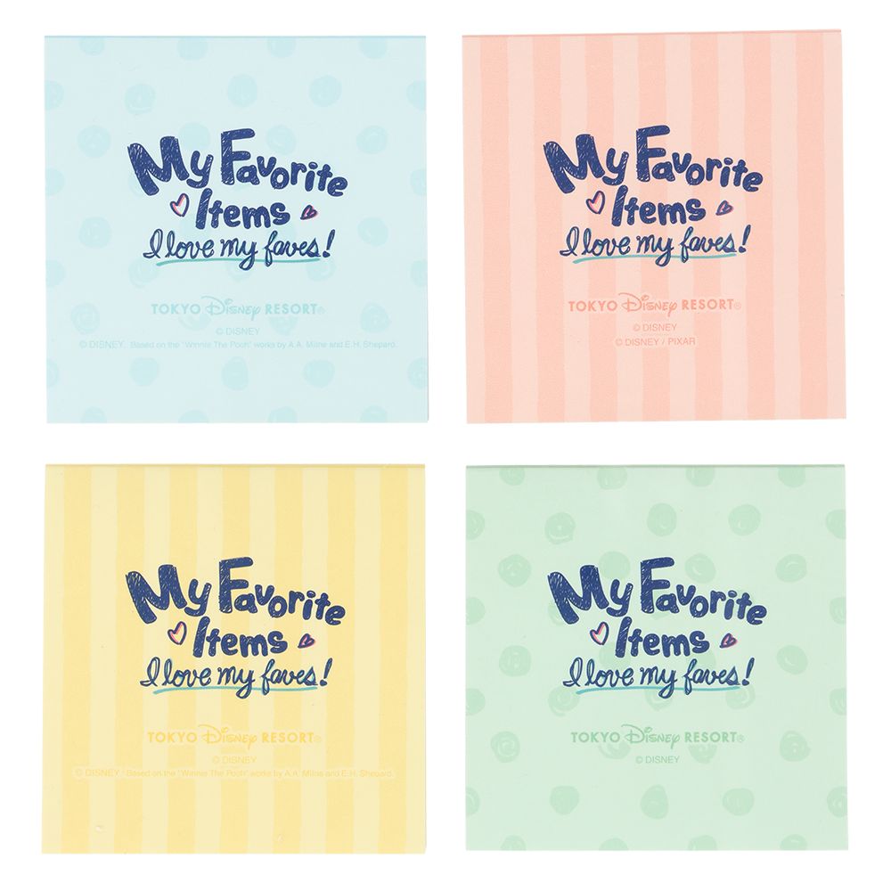 パークの楽しかった思い出がぎゅっとつまっている、たくさんのおみやげたちをモチーフにしたメモ4個セット。
