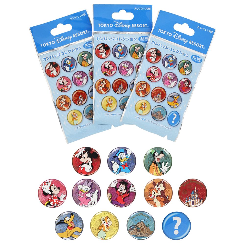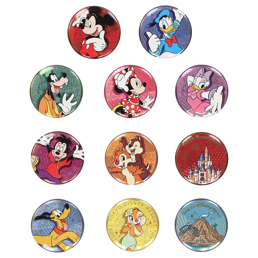 ミッキーマウスと仲間たちがデザインされたカンバッジ。