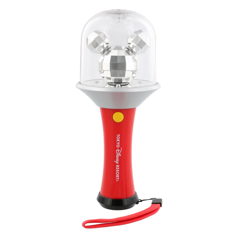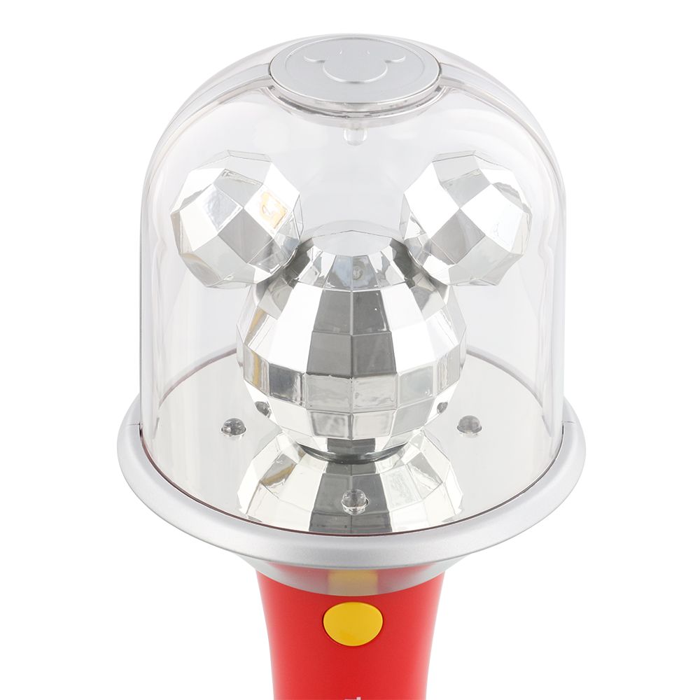 持ち手部分についているイエローのボタンを押すと、ミッキーシェイプが回転して光ります。カラフルな光を反射して輝く様子がとっても華やか♪