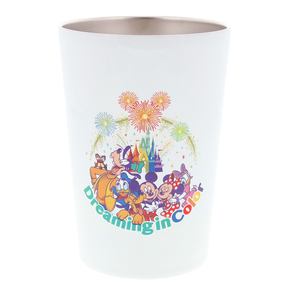 ミッキーマウスと仲間たちやシンデレラ城がデザインされたタンブラー。