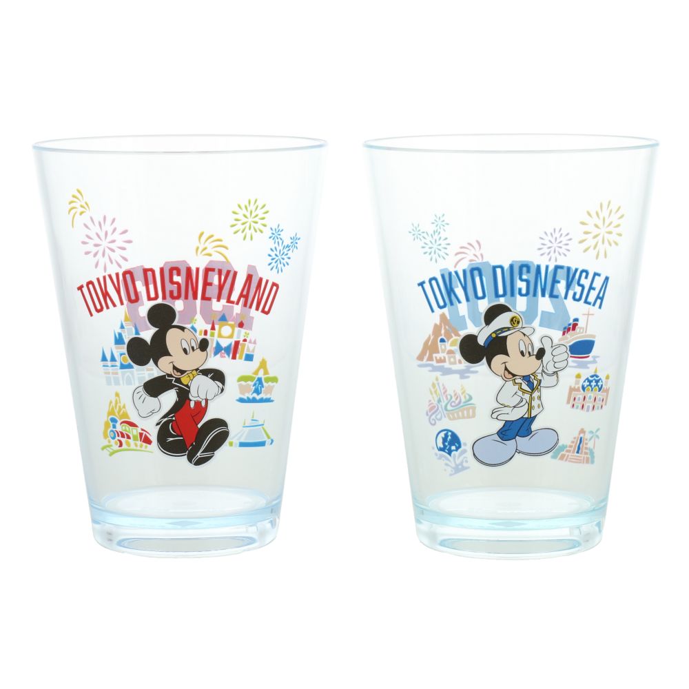 東京ディズニーランドと東京ディズニーシーのモチーフが描かれたタンブラー2個。