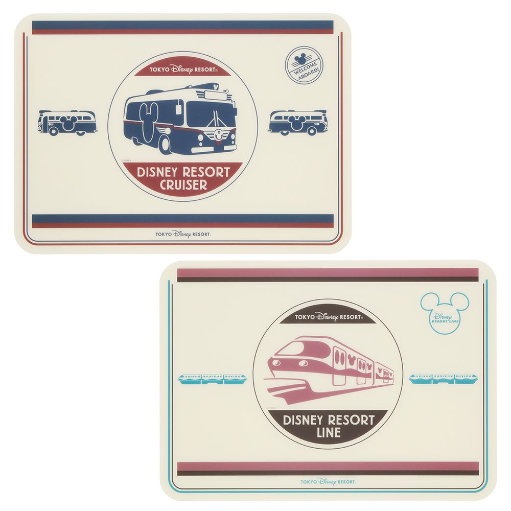 それぞれ、東京ディズニーリゾート内を運行するシャトルバス、ディズニーリゾートクルーザーと、東京ディズニーリゾートを周回するモノレールのディズニーリゾートラインが描かれています。