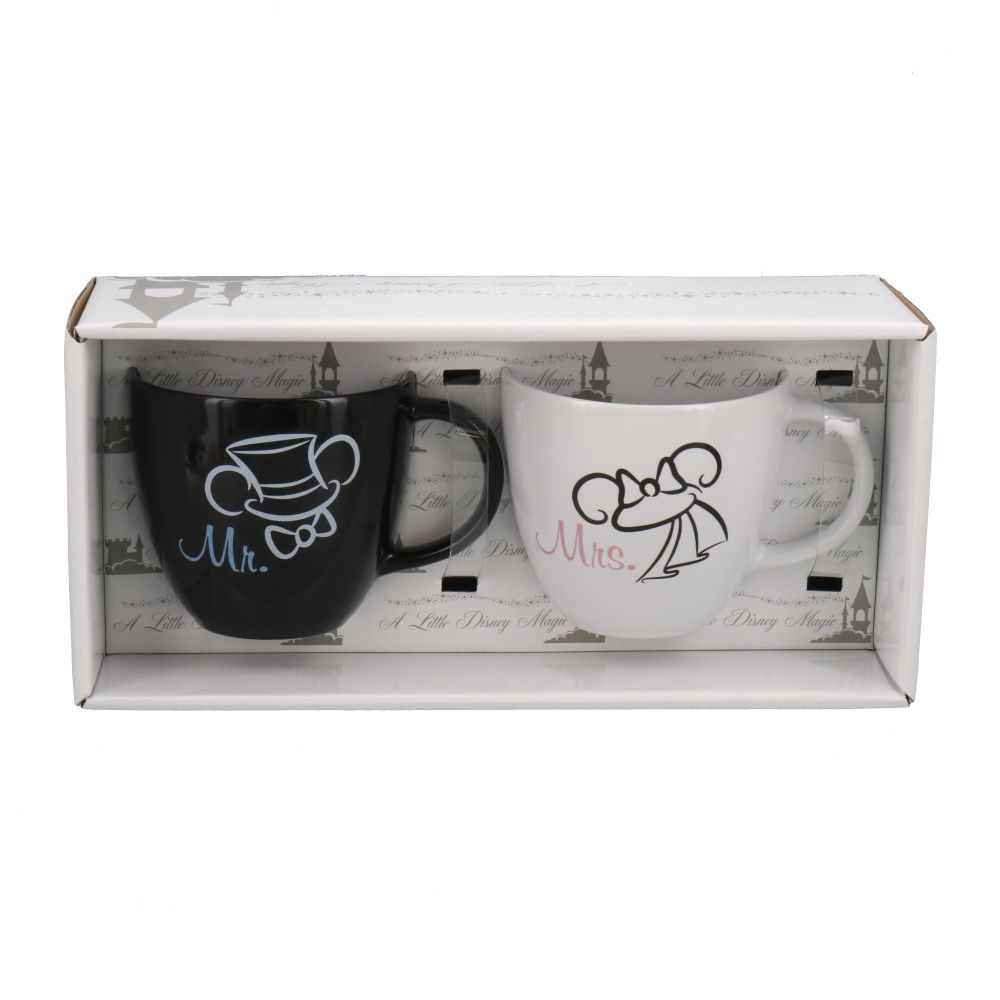 Mr.とMrs.のデザインが目を惹く陶器のマグカップ2個セット。