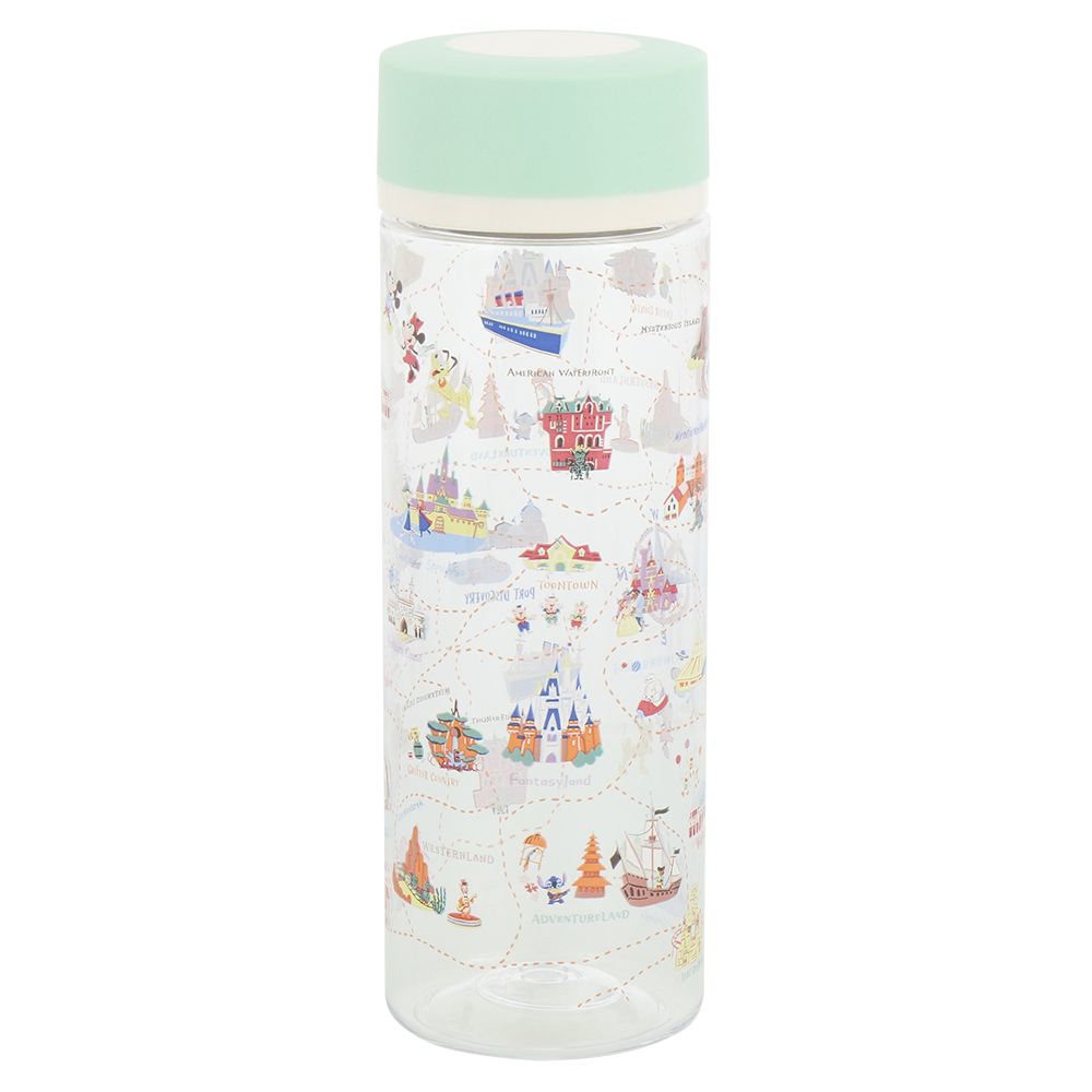ミッキーたちが楽しそうに巡っているパークのマップやアイコンをモチーフにしたドリンクボトル。