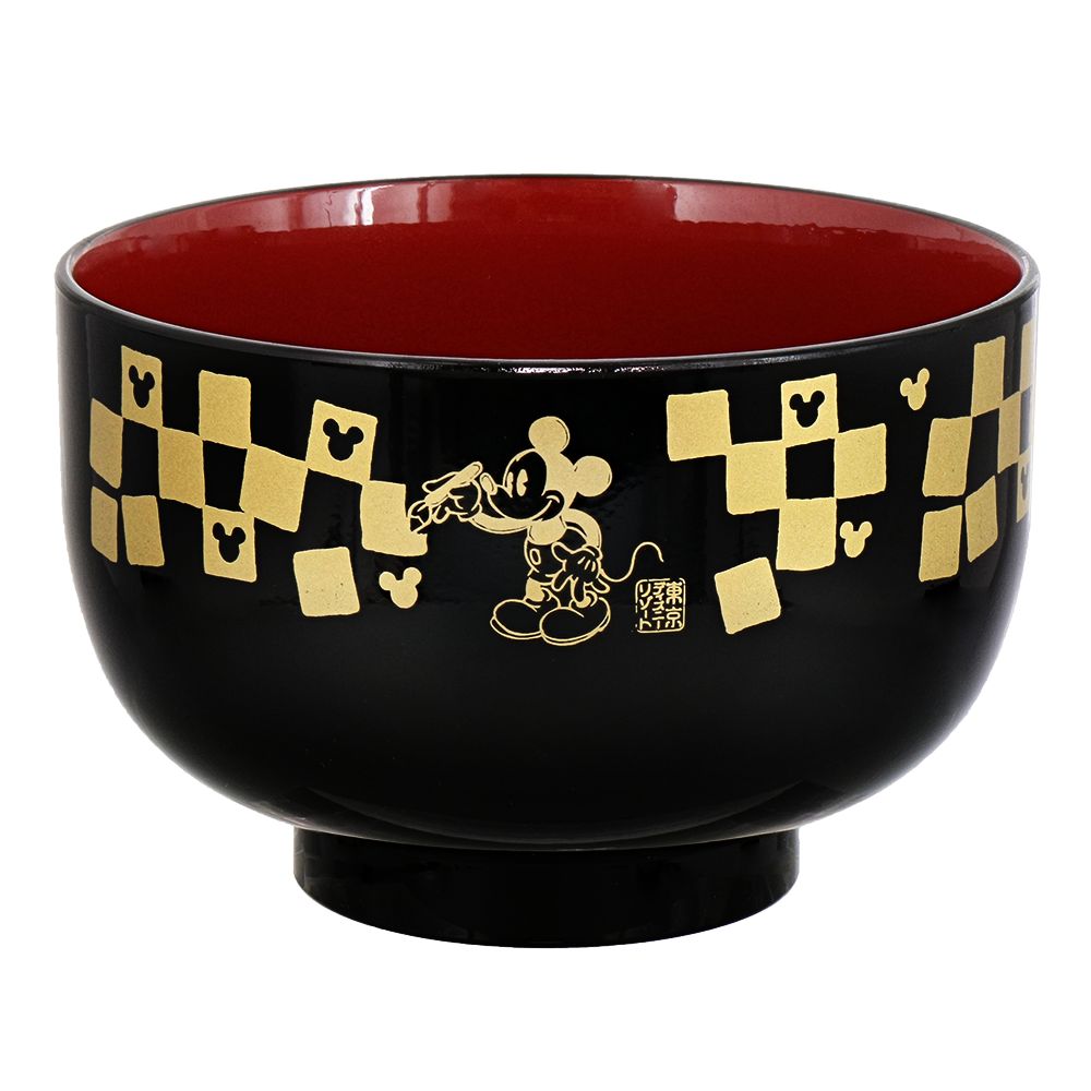 ミッキーシェイプがちりばめられた、ブラックとゴールドのカラーが印象的なお椀です。