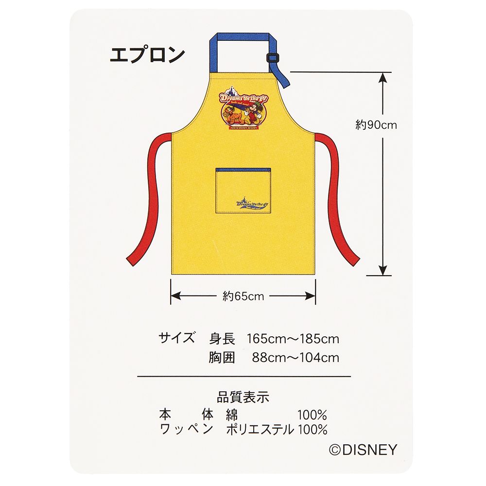ディズニーキャラクターが描かれた商品が並ぶ、グロサリーストアをモチーフにしたエプロンです。