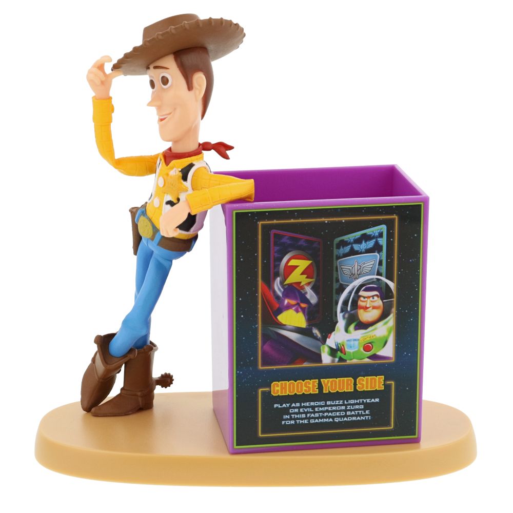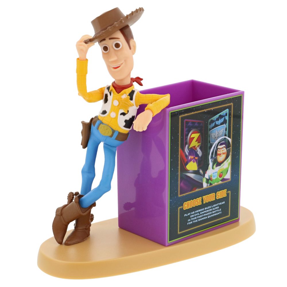 小物入れに寄りかかってポーズをとっているウッディは、ホテルの中庭に立っているウッディがモチーフです。部屋に置いたらパッと明るくにぎやかな空間になりそう。バズやザーグがデザインされているのもポイントです!