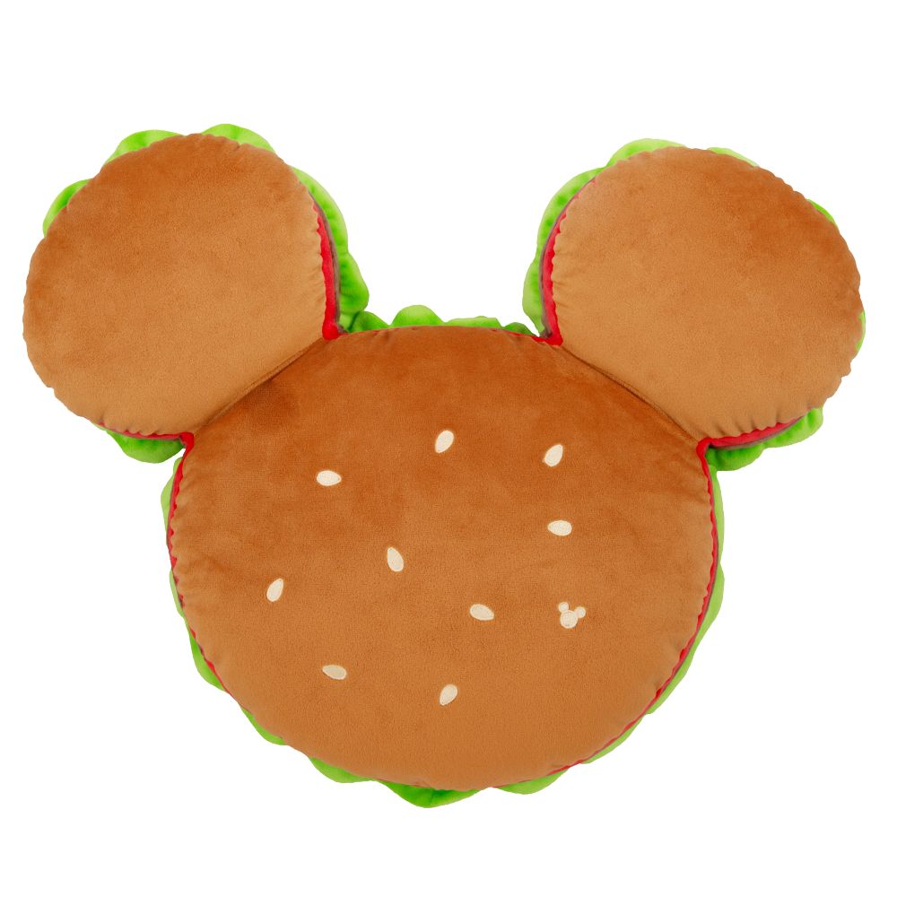 ミッキーシェイプのハンバーガーをモチーフにしたクッション。
