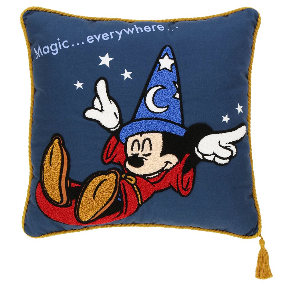 映画『ファンタジア』に登場する、魔法使いの弟子となったミッキーマウスがデザインされたクッション。