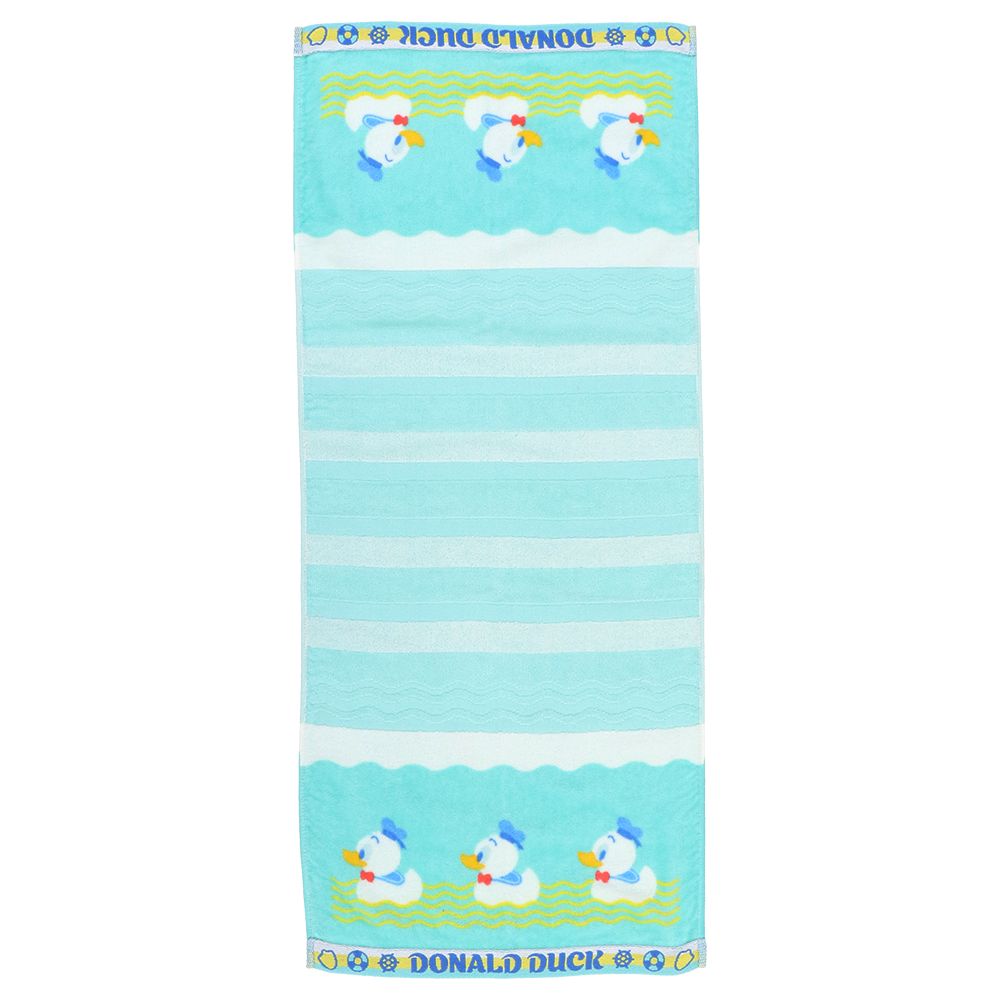 ぷかぷか浮いているドナルドがデザインされた、フェイスタオル。