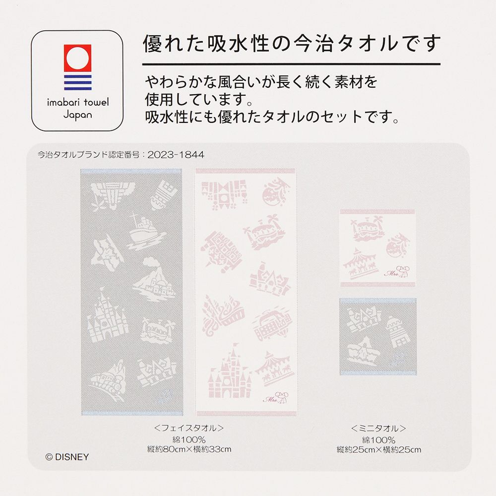 パークのアイコンがデザインされた、ミニタオル2枚とフェイスタオル2枚〈今治タオル〉。