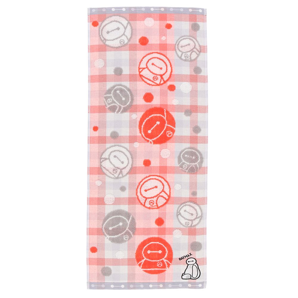 チェック柄とベイマックスがたくさんデザインされたフェイスタオルです。