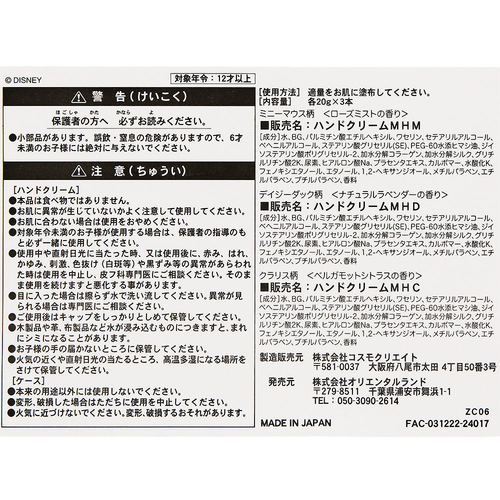 ハンドクリーム3個 ミニー デイジー クラリス