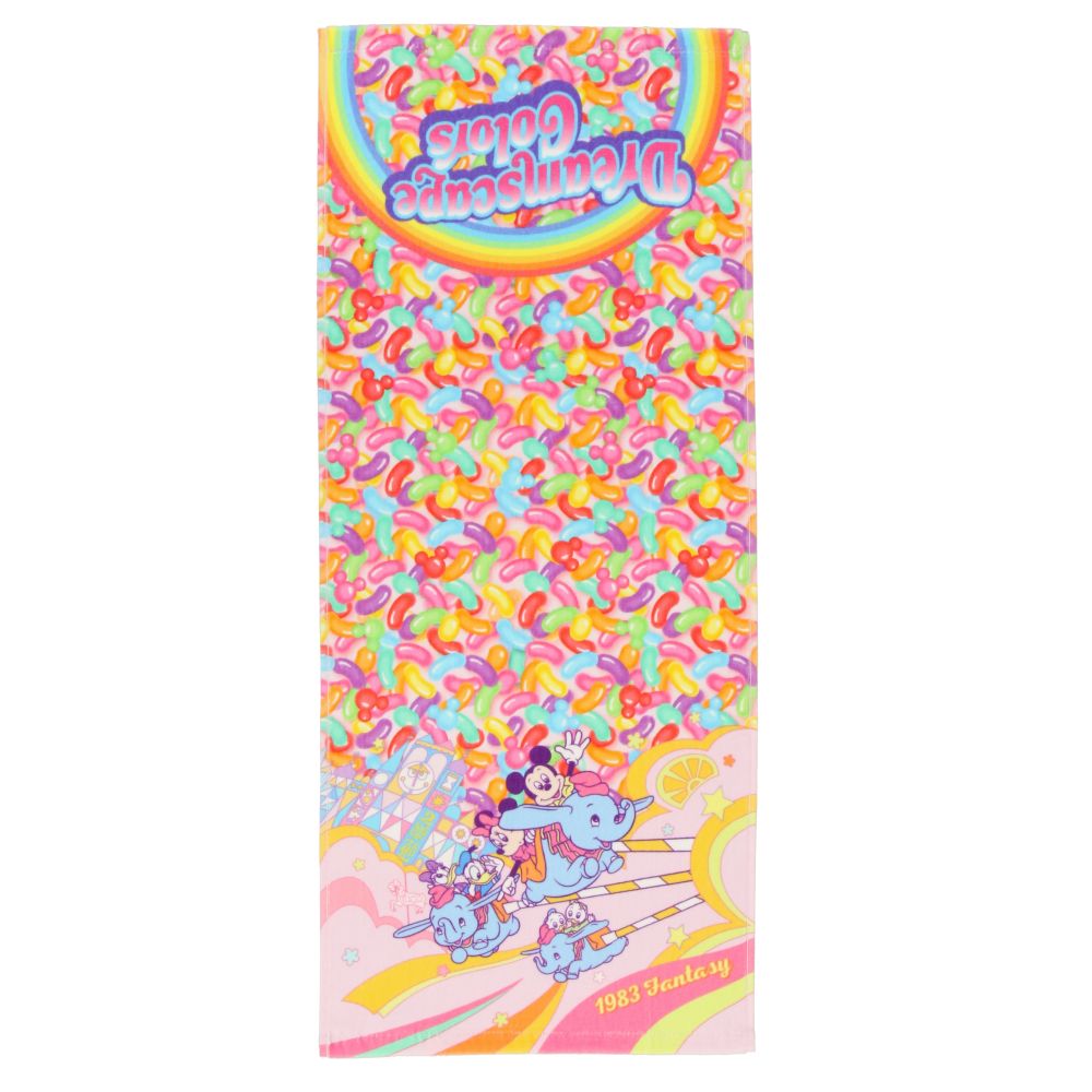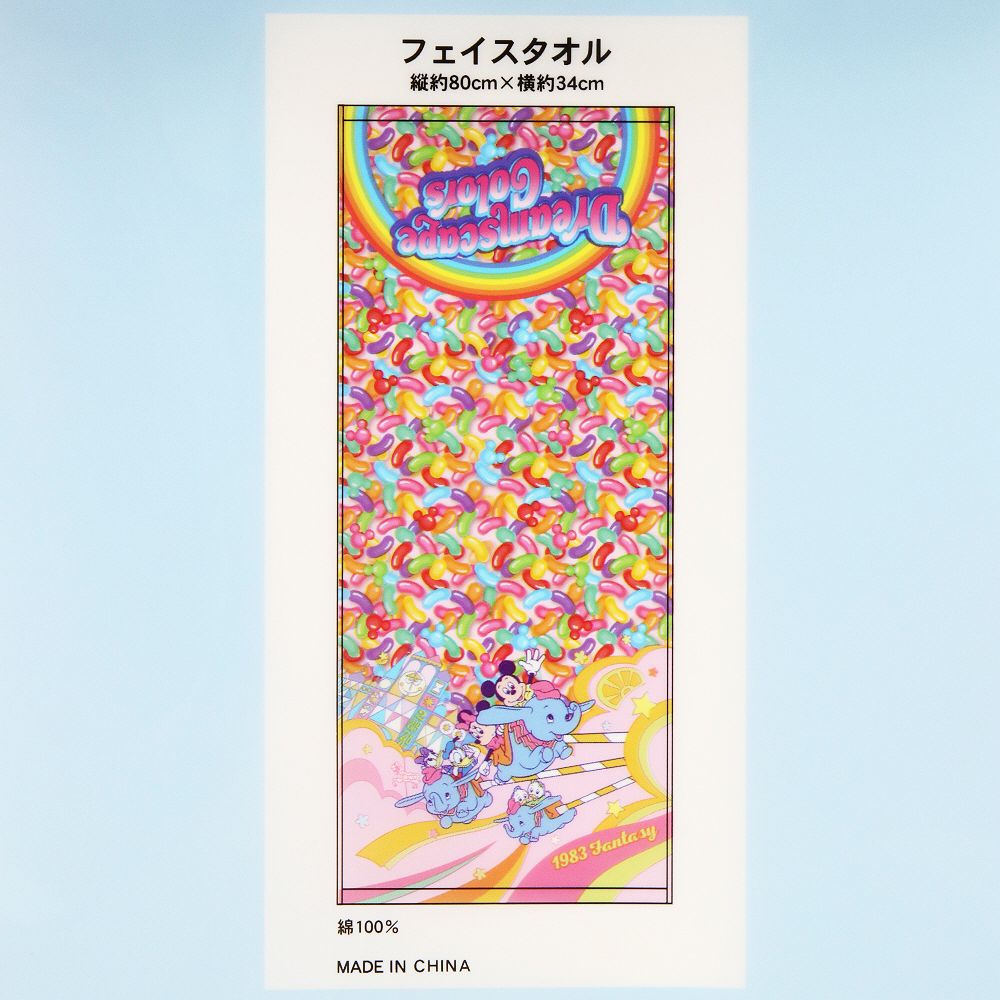 ディズニーキャラクターが描かれた商品が並ぶ、グロサリーストアをモチーフにしたフェイスタオル。