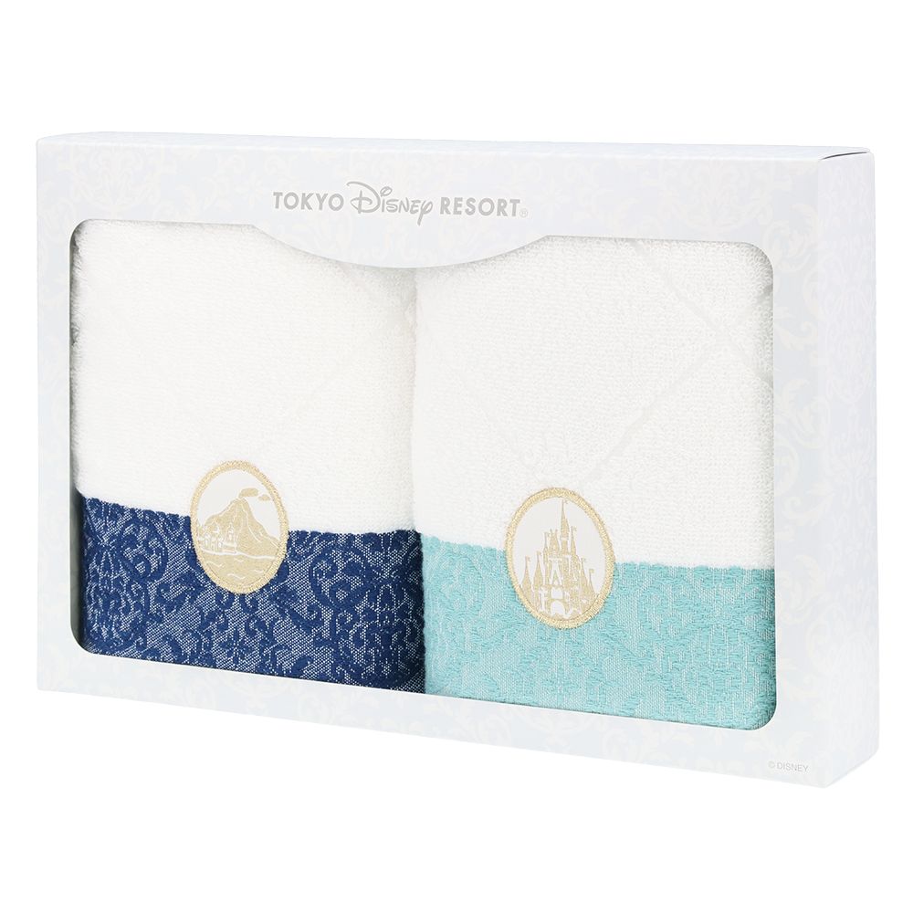 2色のブルーが印象的なフェイスタオル2枚セット〈今治タオル〉。