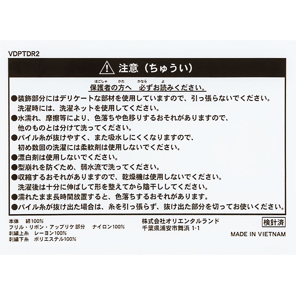 東京ディズニーリゾートのアパレルグッズのサイズにつきましてはこちらのサイズ表をご確認ください。