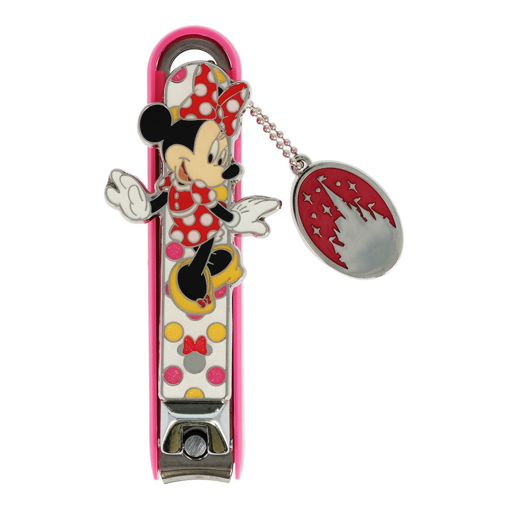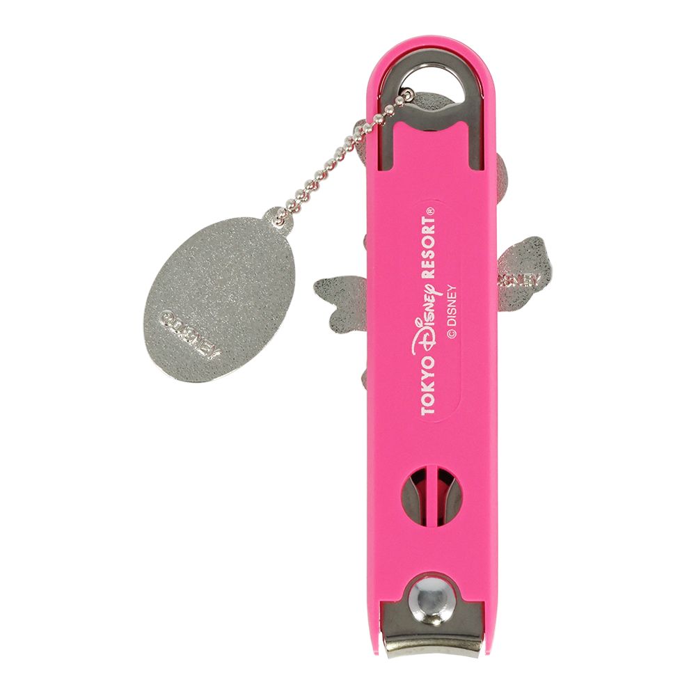シルバーとピンクの本体に、ミニーがデザインされた爪切りです。