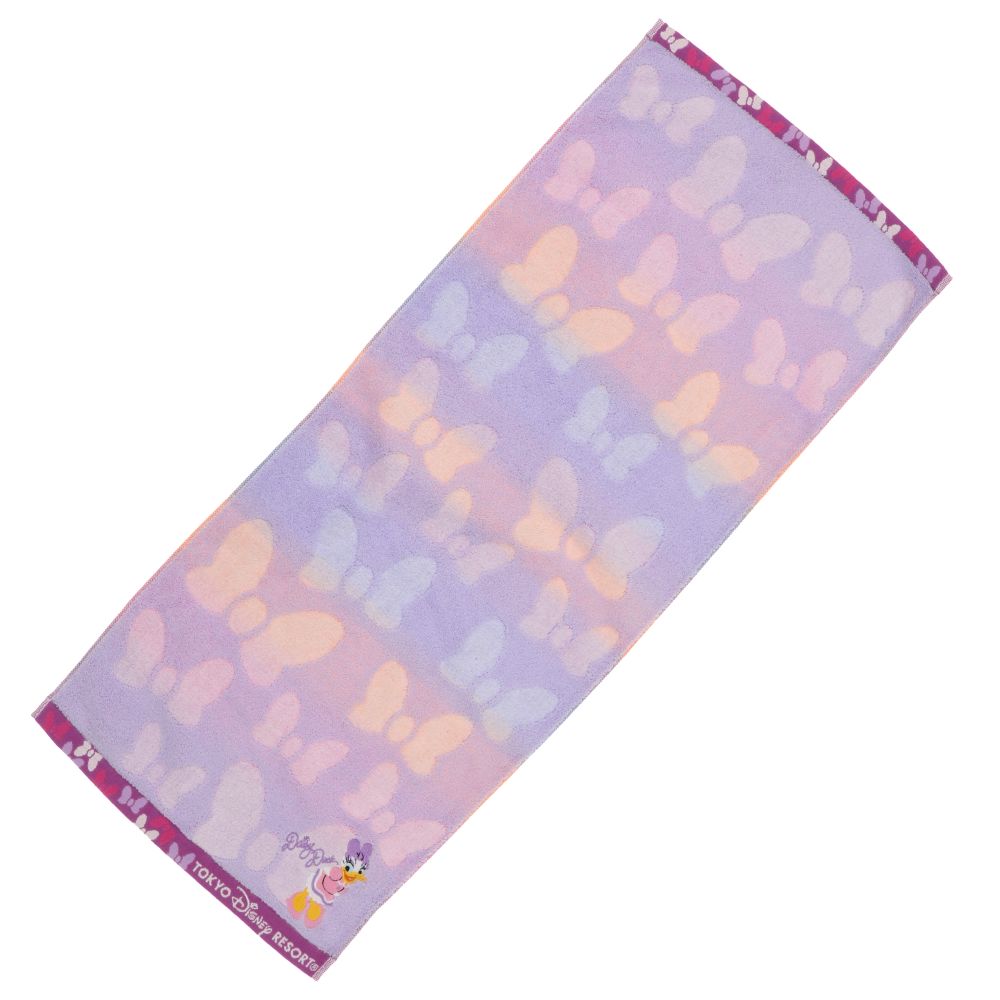 さまざまなサイズのリボン模様がタオルの縁まで描かれています。端に刺繍されたデイジーがとってもキュートで、目を惹くデザイン♪