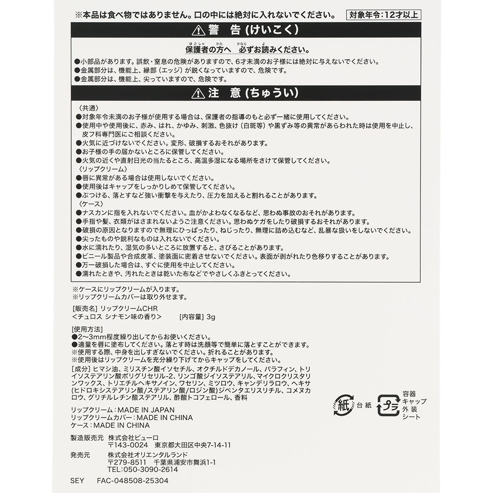 リップクリームカバー:長さ約6cm