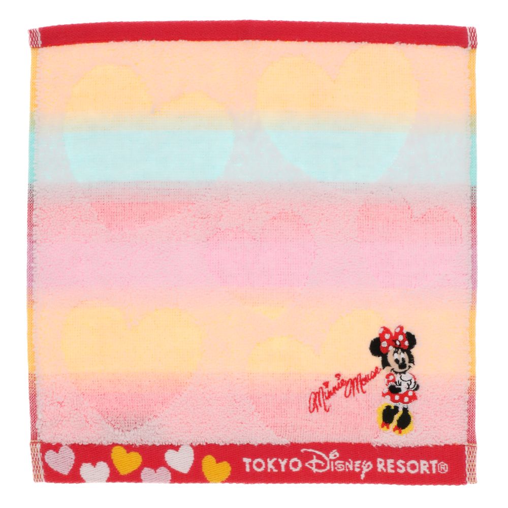 オレンジ、ブルー、ピンクのグラデーションカラーが特徴のミニタオルです。