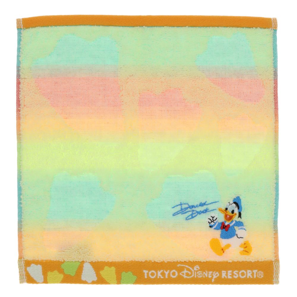 ブルーやピンク、イエローのカラフルなグラデーションがきれいなミニタオル。