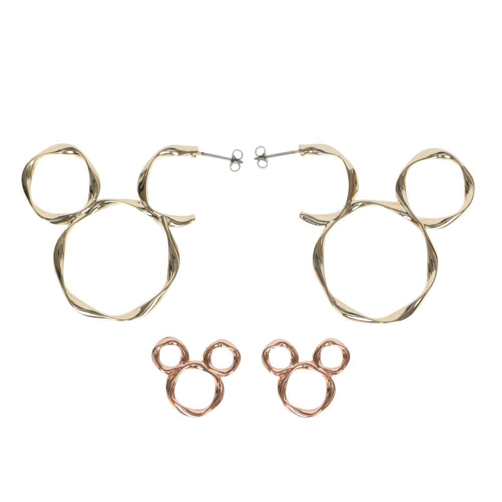 ゴールドとピンクゴールドが輝く、ミッキーをイメージしたピアス。