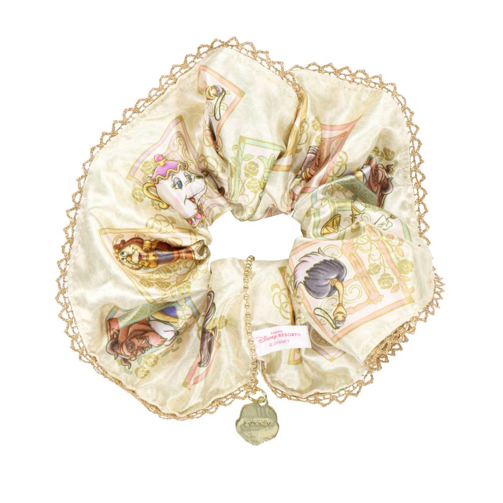 映画『美女と野獣』に登場するベルたちがデザインされたシュシュ。