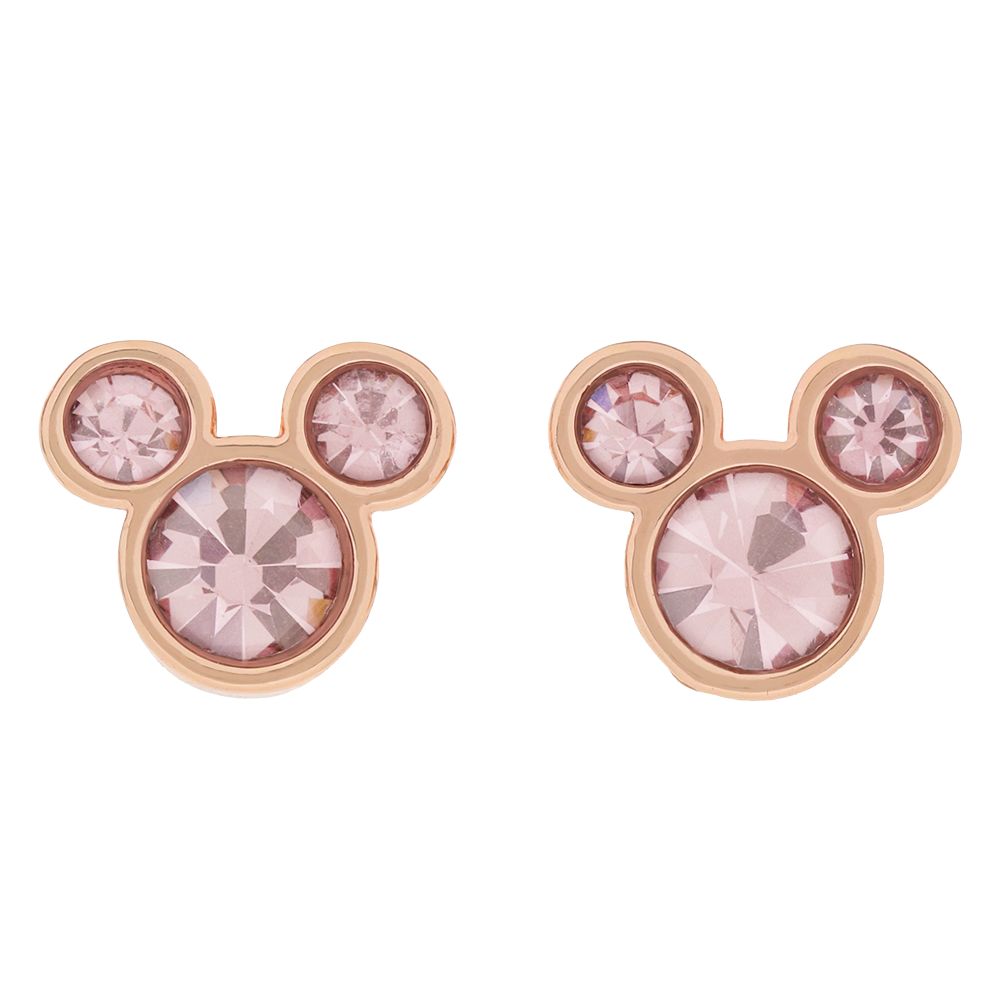ピンクのパーツがきらきらと輝き、大人っぽい印象のミッキーシェイプのピアスです。