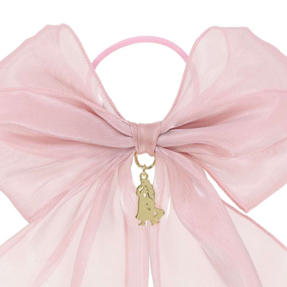 結び目にはラプンツェルのシルエットをイメージしたゴールドのチャームが付いていて、動くたびにゆらゆら揺れて魅力的。