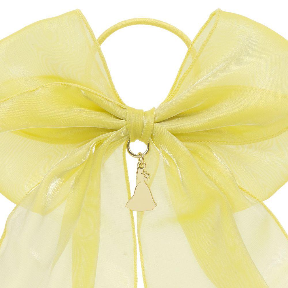 結び目には映画『美女と野獣』に登場するベルのシルエットをイメージしたゴールドのチャームが付いており、動くたびに揺れてキラっと輝きます。