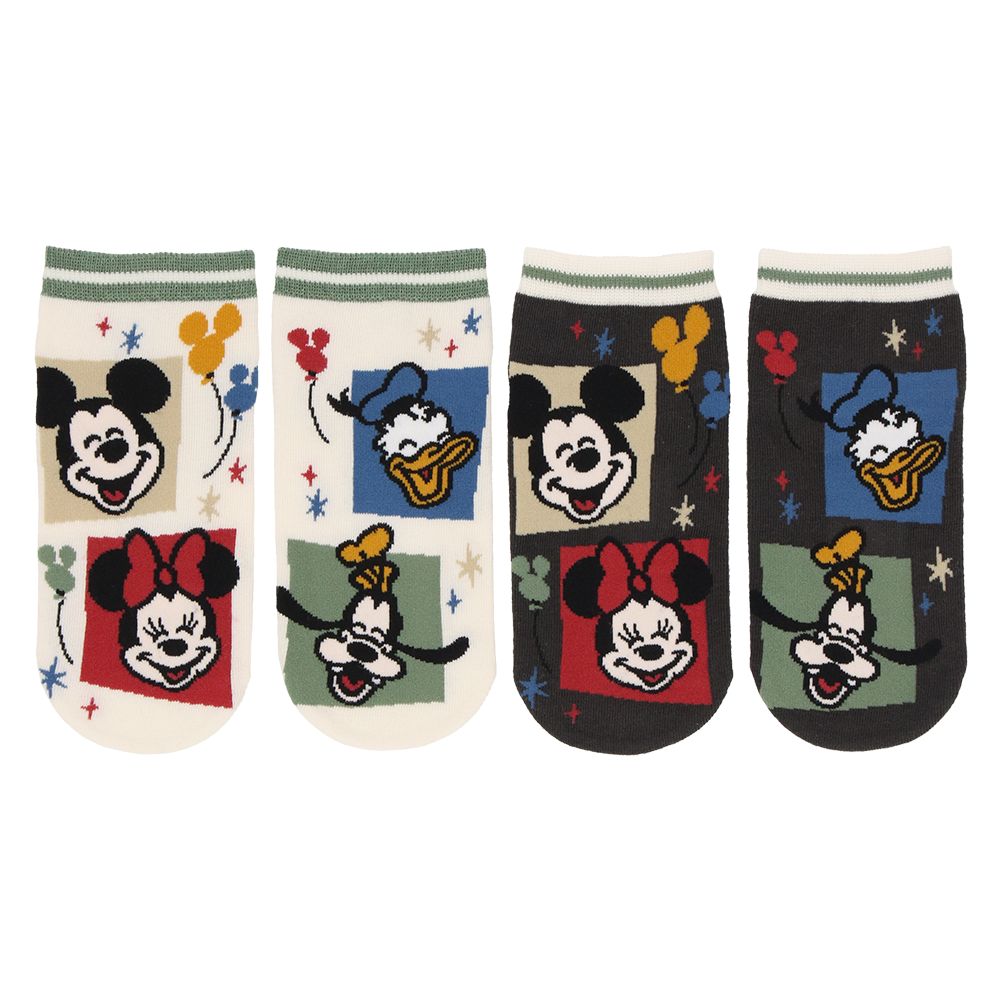 はじける笑顔と元気いっぱいのミッキーたちがデザインされた靴下。