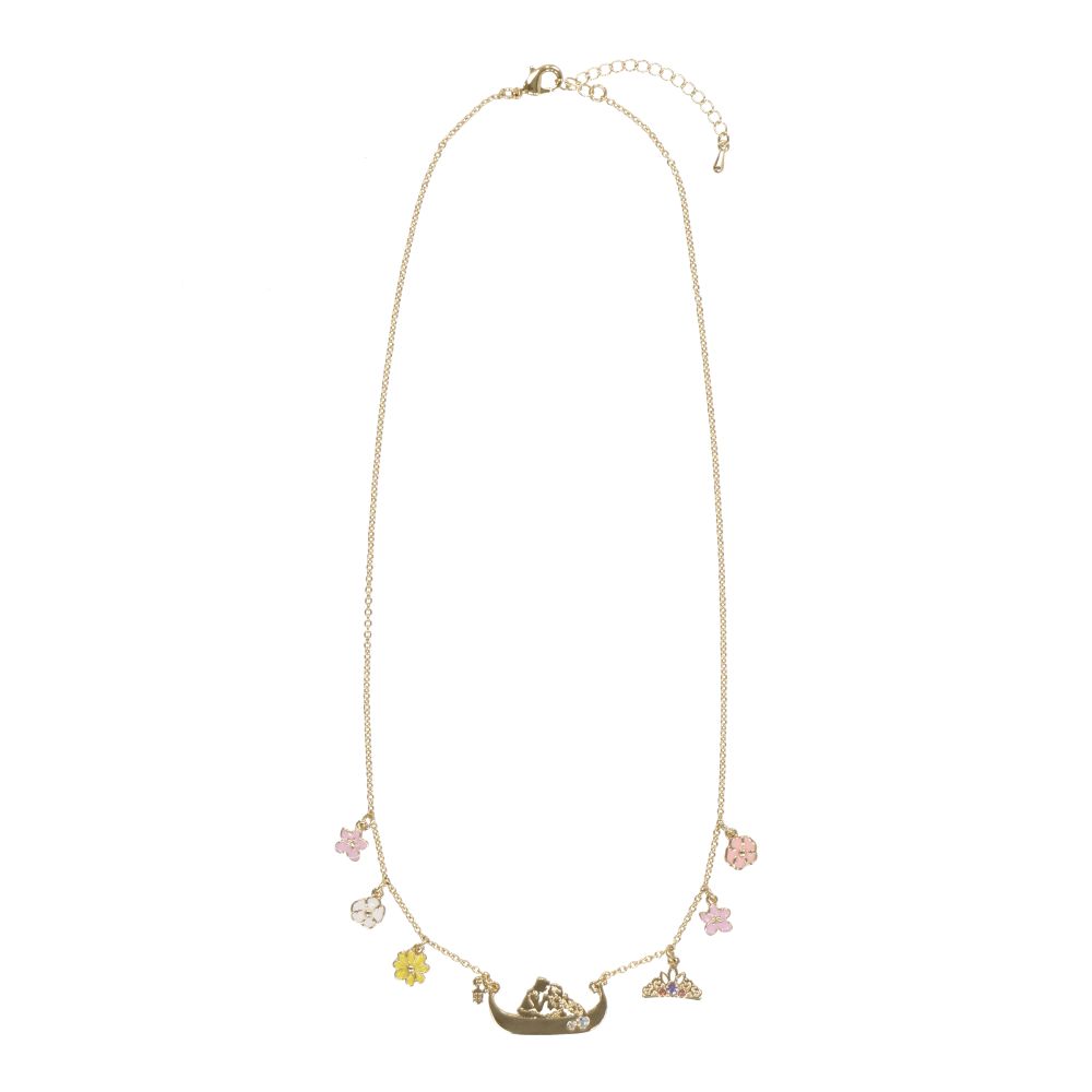 ボートに乗るラプンツェルとフリン・ライダーを彩るように付いている花とティアラのチャームもキュート♪
