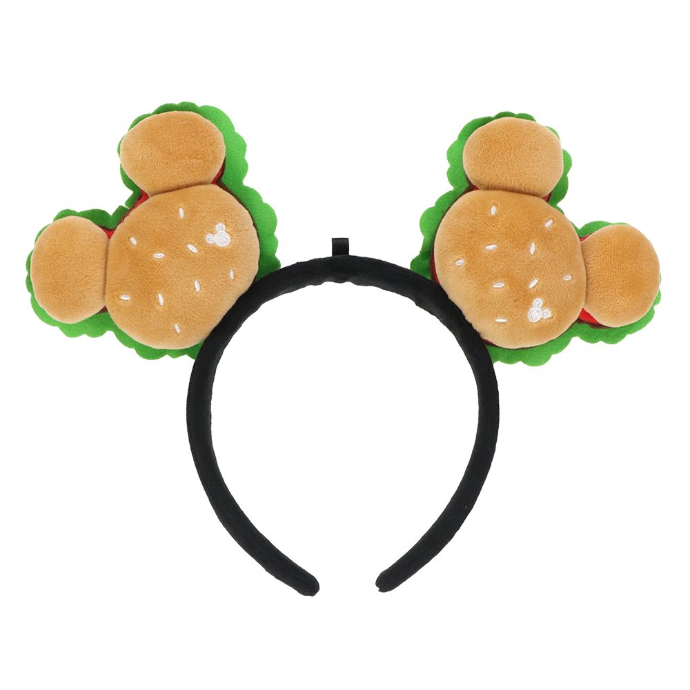 ミッキーシェイプをモチーフにした、ハンバーガーが付いているカチューシャ。
