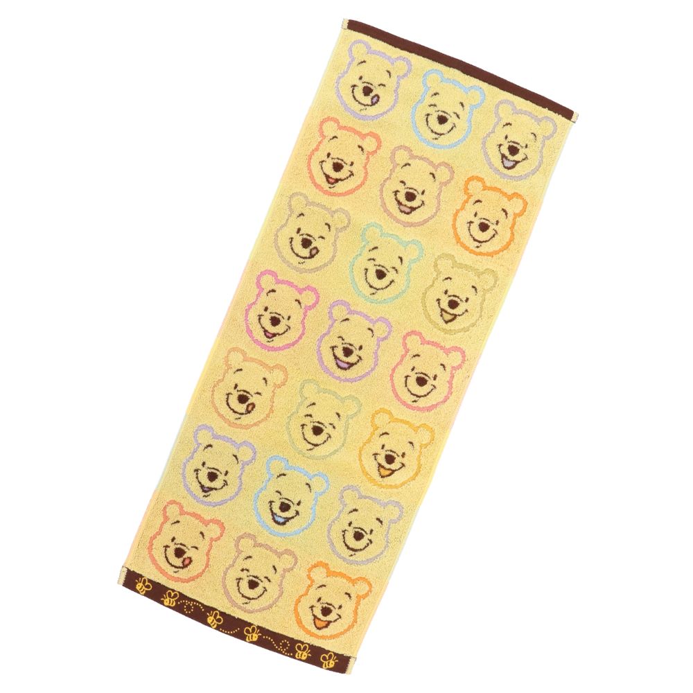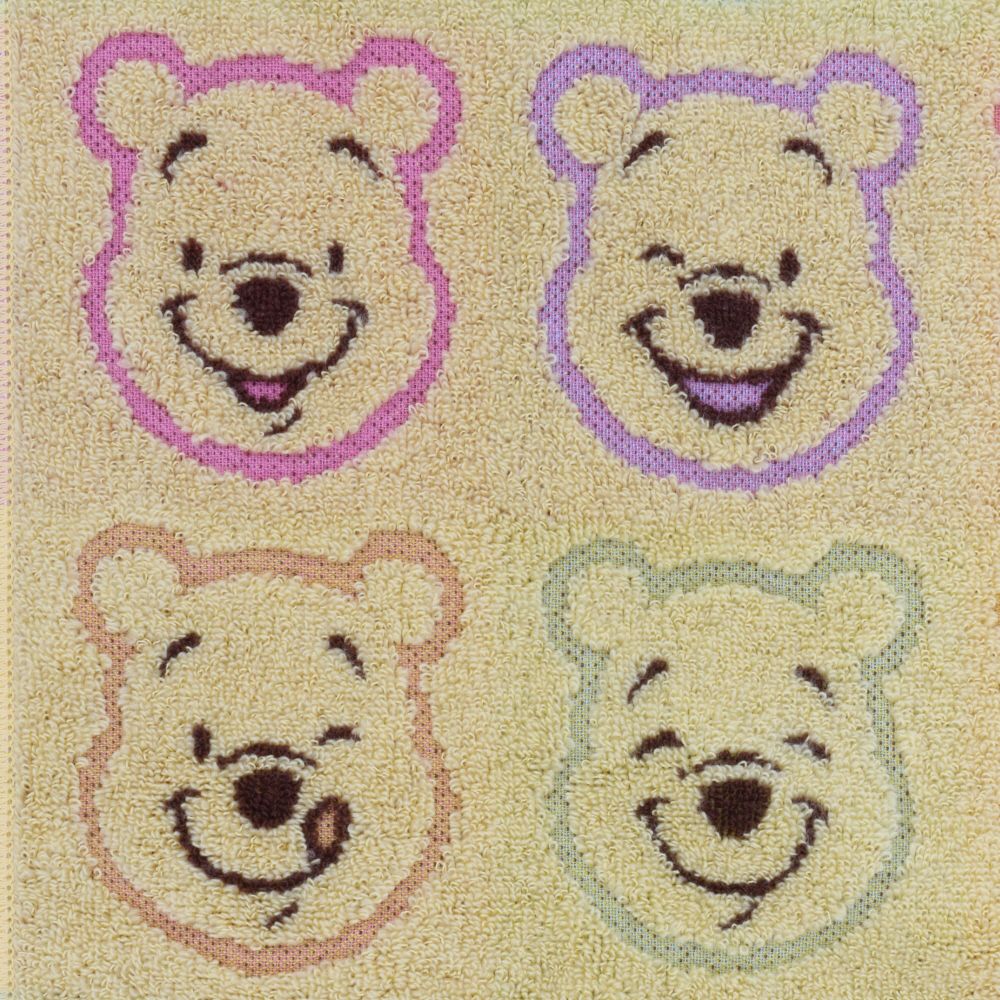 いろいろな表情のプーがデザインされたベビー向けのフェイスタオル。