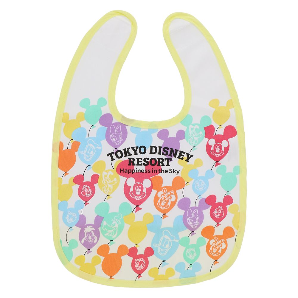 カラフルなバルーンとミッキー&フレンズがデザインされたベビースタイ。